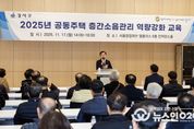 (뉴스인020 = 김성길 기자) 서울 강서구는 17일 서울창업허브 엠플러스에서 ‘공동주택 층간소음관리 역량강화 교육’을 개최했다. 이번 교육은 최근 전국적으로 층간소음 민원이 급증하고 법적 기준 초과 사례가 빠르게 늘면서, 공동주택 관리주체와 주민 대표들의 현장 대응 역량을 높이고 주민 간 갈등을 예방·해결하기 위해 마련됐다. 실제로 층간소음 이웃사이센터 집계에 따르면, 기준 소음 초과 사례는 2020년 18건에서 지난해 88건으로 약 5배 증가했으며, 올해 9월까지 이미 60건을 넘어섰다. 이번 교육에는 공동주택 70세대 이상에서 의무적으로 구성하도록 규정된 층간소음관리위원회 위원과 49개 공동주택 관리소장, 입주자대표회의 구성원 등 총 70명이 참석했다. 강의는 중앙공동주택관리 분쟁조정위원회 위원을 지낸 한영화 변호사가 맡아, 층간소음 법적 기준과 위원회의 역할, 갈등 조정 절차, 관리주체의 현장 대응 요령 등을 실제 사례와 판례 중심으로 설명하며 참가자들의 이해를 높였다. 참석자들은 층간소음 민원 청취, 사실관계 확인, 조정·중재 방법, 법적 대응과 홍보·예방 활동 등 다양한 실무