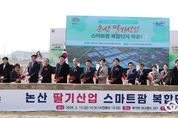 (뉴스인020 = 김성길 기자) 대한민국 스마트농업을 선도 중인 충남도가 ‘딸기 메카’ 논산에 대규모 수출 전문 딸기 스마트팜 단지를 만든다. 도는 13일 논산시 부적면 마구평리 일원에서 전형식 정무부지사와 청년농업인 등 300여 명이 참석한 가운데 ‘논산 딸기산업 스마트팜 복합단지(이하 논산 딸기 복합단지)’ 착공식을 개최했다. 논산 딸기 복합단지는 2028년까지 145억 5500만 원을 투입, 14.1㏊(4만 3000평) 규모로 조성한다. 논산 딸기 복합단지는 논산시가 국유지 땅을 매입해 용배수, 전기, 도로, 오폐수 처리 등 기반 시설을 설치한 뒤 부지를 제공하고, 청년농 등이 보조·융자금과 자부담으로 온실을 설치한다. 1단계 충남형 스마트팜 복합단지 7.4㏊는 15개 구획으로 나눠 올 상반기 완공을 목표로 조성 추진 중이다. 도와 논산시는 15개 구획 가운데 12개 구획 12명의 입주 청년농 선발을 마쳤으며, 다음 달 중 나머지 3명을 선발할 계획이다. 각 구획당 면적은 3300∼4950㎡ 규모로, 청년농에게 안정적인 스마트팜 경영 기회와 함께 자립 기반을 제공한다.