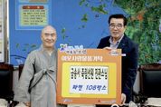 (뉴스인020 = 김성길 기자) 보령시는 27일 시장실에서 김동일 보령시장과 삽시도 금송사 죽림선원 진관스님 등 관계자가 참석한 가운데 이웃사랑 후원물품 전달식을 가졌다고 밝혔다. 이날 기탁된 물품은 230만 원 상당의 라면 108박스로, 식사 준비에 어려움을 겪는 관내 저소득 취약계층 가구의 생활 안정을 돕기 위해 마련됐다. 기탁된 물품은 각 읍·면·동을 통해 도움이 필요한 소외계층 108가구에 소중히 전달될 예정이며, 대상자들이 일상 속에서 따뜻한 이웃의 정을 느낄 수 있도록 도울 계획이다. 삽시도 금송사 죽림선원은 지난 18여 년 동안 여름철 냉방기기, 겨울철 이불 등 계절마다 꼭 필요한 맞춤형 물품을 후원하며 보령시 나눔 문화 확산의 본보기가 되고 있다. 진관스님은 “정성을 담아 준비한 물품이 우리 주변의 어려운 이웃들에게 작게나마 실질적인 도움이 되길 바란다”며 “앞으로도 이웃과 함께 상생하며 부처님의 나눔 정신을 실천해 나가겠다”고 말했다. 김동일 보령시장은 “매번 계절마다 꼭 필요한 물품으로 온정을 전해주시는 금송사 죽림선원 진관스님께 깊이 감사드린다”며 “기탁하신 소중한