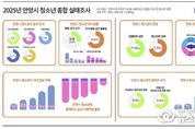 (뉴스인020 = 김성길 기자) 안양시청소년재단은 5일 관내 초등학교 4학년부터 고등학교 3학년까지 재학 중인 청소년 2,782명과 학교 밖 청소년 53명을 대상으로 실시한 ‘2025년 안양시 청소년 종합 실태조사’ 결과를 발표했다. 이번 조사는 안양시 청소년의 삶·여가·참여·건강·안전·재단 인지도 전반을 종합적으로 파악하고 향후 청소년 정책 수립에 반영하기 위해 지난 6월 9일부터 10월 6일까지 실시됐다. (표본오차 95%, 신뢰수준 ±1.80%p) ◇ 안양시 청소년 행복감 평균 6.8점…학년 오를수록 행복감·관계 만족도 ‘떨어져’ 조사에 따르면 안양시 청소년의 현재 행복감은 10점 만점 기준 평균 6.8점으로 나타났다. 초등학생(7.5점)이 가장 높고, 중학생(6.6점), 고등학생(6.4점) 순으로 갈수록 감소하는 경향을 보였다. 주변 관계 만족도는 10점 만점 기준 평균 7.8점으로 나타났다. 특히, 고등학생의 만족 응답 비율은 56.8%로 초등학생(82.8%) 대비 크게 낮았다. 청소년의 지역사회 소속감(평균 7.34점)과 지역환경 만족도(평균 7.21점) 역시 학년 상승에 따라 하락하는
