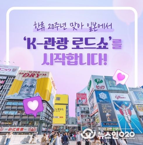 (뉴스인020 = 김나현 기자) 한류 20주년을 맞이해 오늘부터 17일(금)까지 일본 3대 도시인 도쿄, 오사카, 후쿠오카에서 첫 'K-관광 로드쇼'를 개최합니다!