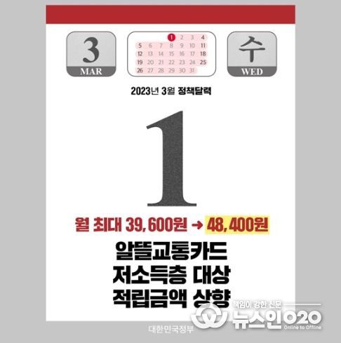 3월 1일부터 알뜰교통카드의 저소득층 대상 적립 금액을 상향합니다.