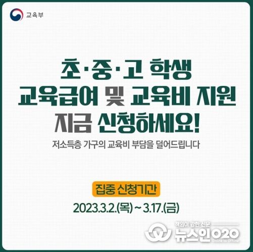 (뉴스인020 = 김나현 기자) 저소득층 가구의 교육비 부담을 덜어드립니다.
