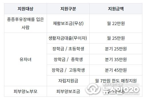 (뉴스인020 = 김나현 기자) 자동차사고로 사망하거나 중증후유장애로 인해 삶이 무너진 가정을 지원하기 위해 마련된 ‘자동차사고 피해지원 제도’를 아시나요? 중증후유장애 당사자와 유자녀, 65세 이상 피부양 노부모에게 최소한의 생계유지와 학업중단의 어려움 해소되도록 재활 및 피부양보조금, 장학금, 자립지원금, 생활자금 대출을 지원하고 있습니다.
