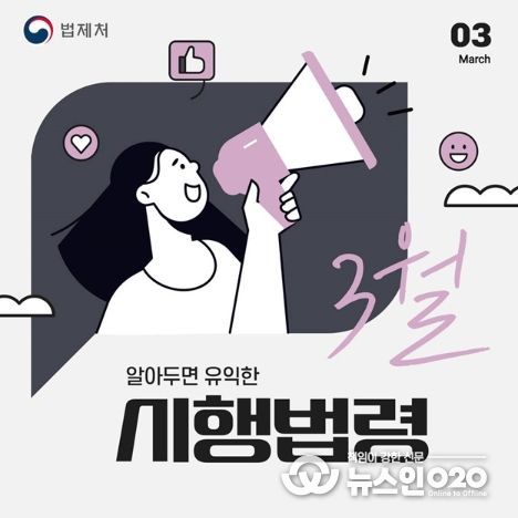 (뉴스인020 = 김나현 기자) 3월 알아두면 유익한 시행법령을 소개합니다!