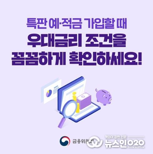 특판 예·적금 상품을 가입할 때 우대금리 지급조건을 꼼꼼하게 확인하고 계약 여부를 결정하도록 금융소비자 유의사항을 안내해 드립니다.