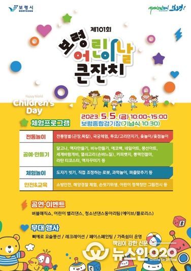 보령시는 오는 5일 오전 10시부터 보령종합체육관에서 어린이 및 가족, 시민 등 5000여 명을 대상으로‘제101회 보령 어린이날 큰잔치’를 개최한다.