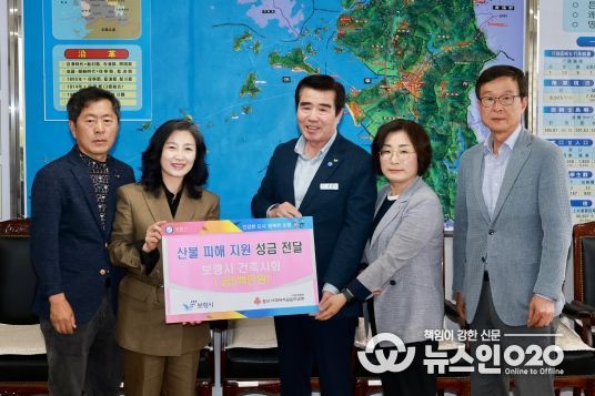 (뉴스인020 = 최정직 기자) 보령시는 3일 시장실에서 김동일 시장과 보령시 건축사회 관계자 4명이 참석한 가운데 산불피해 지원 성금 전달식을 가졌다.