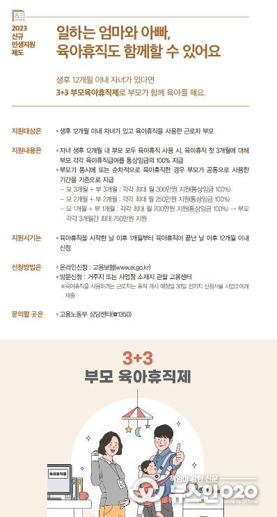 (뉴스인020 = 김나현 기자) 생후 12개월 이내 자녀가 있다면 3+3 부모육아휴직제로 부모가 함께 육아를 해요.