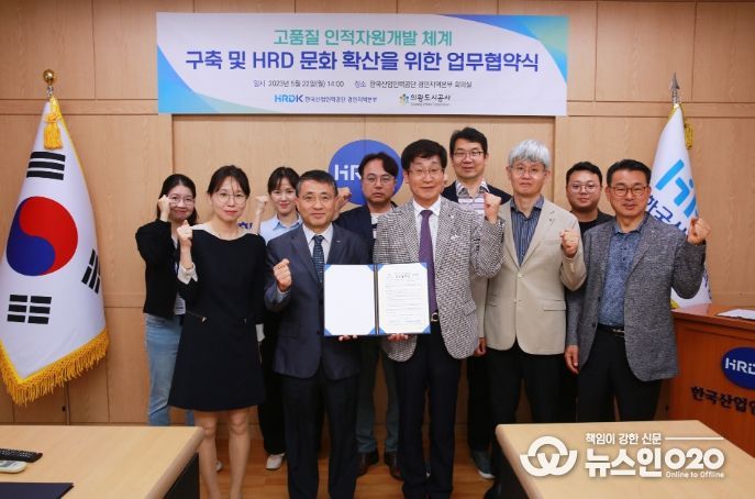 (뉴스인020 = 김성길 기자) 의왕도시공사는 22일 한국산업인력공단과 고품질 인적자원개발 체계 구축 등 상호 업무 협업 활성화를 위한 협약을 체결했다고 밝혔다.