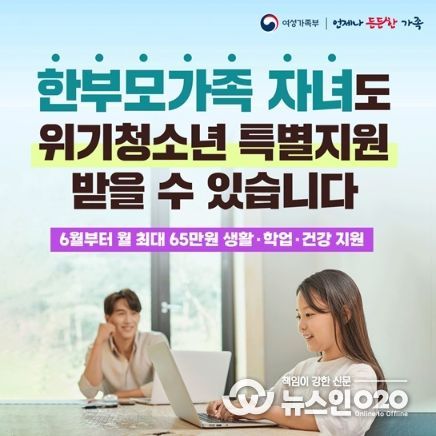(뉴스인020 = 김나현 기자) 앞으로 저소득 한부모가족 자녀도 위기청소년 특별지원 대상에 포함돼 월 최대 65만원 상당의 각종 지원을 받을 수 있게 됩니다.
