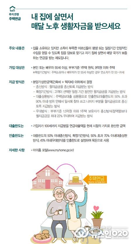 (뉴스인020 = 김나현 기자) 내 집에 살면서 매달 노후 생활자금 받으세요.