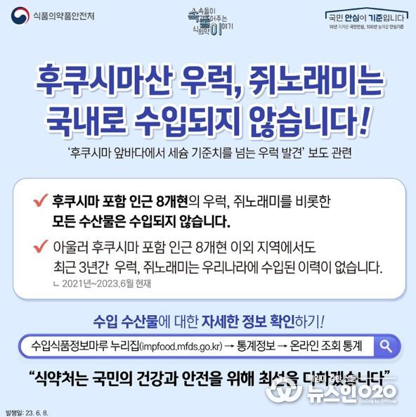 (뉴스인020 = 김나현 기자) 후쿠시마 포함 인근 8개현의 우럭, 쥐노래미를 비롯한 모든 수산물은 수입되지 않습니다.