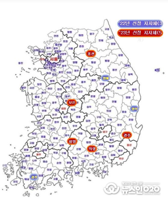 선정된 지자체는 강원도 홍천군, 충청북도 보은군, 경상북도 경주시, 경상남도 의령군, 경상남도 함양군 등 5곳이며, 서면심사와 현지실사 등을 거쳐 선정됐다.