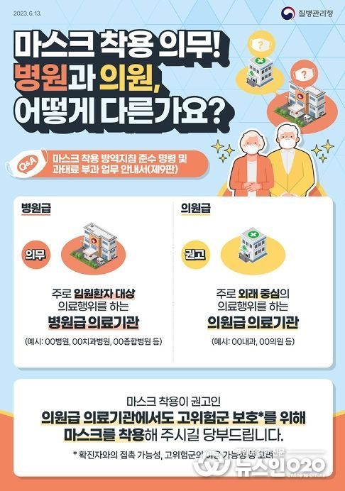 마스크 착용이 권고인 의원급 의료기관에서도 고위험군 보호*를 위해 마스크를 착용해 주시길 당부드립니다.