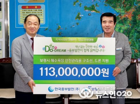 (뉴스인020 = 최정직 기자) 한국중부발전이 보령시에 재난안전 사회공원 지원사업 지원금 1억1300만 원을 기탁했다.