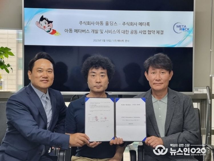 (뉴스인020 = 김성길 기자) 전 세계 메타버스의 표준 규약인 닷큐브프로토콜(이하 DCP)을 추진 중인 (주)메타록(의장 김종우)이 18일 본사에서 ㈜아톰홀딩스(공동대표 안도 이사오, 김현석)와 ‘아톰 메타버스 개발 및 서비스에 대한 공동 사업’을 위한 양해 각서(Memorandum of Understanding, MoU)를 체결했다고 밝혔다.