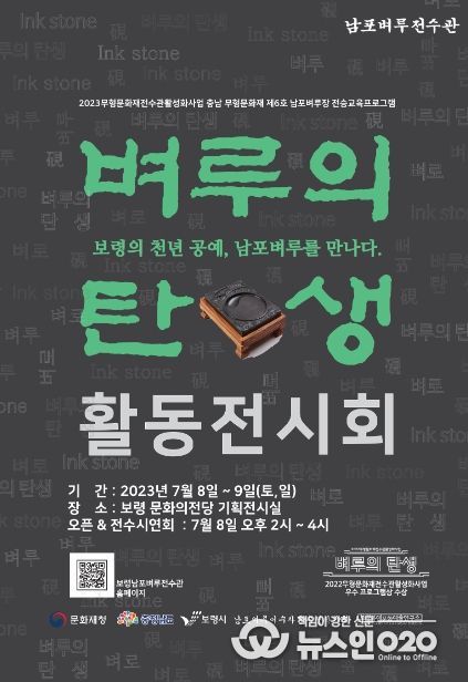 (뉴스인020 = 최정직 기자) 보령시는 오는 7월 8일부터 7월 9일까지 보령 문화의전당 기획전시실에서 무형문화재 전수관 활성화 프로그램 ‘벼루의 탄생’ 활동 전시회를 개최한다.