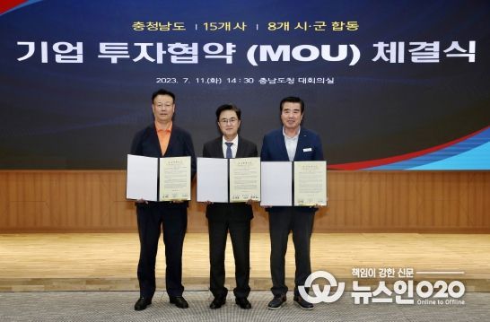 (뉴스인020 = 최정직 기자) 보령시는 11일 오후 충남도청 대회의실에서 우수 중견기업과 함께 충청남도 합동 투자협약을 체결했다.