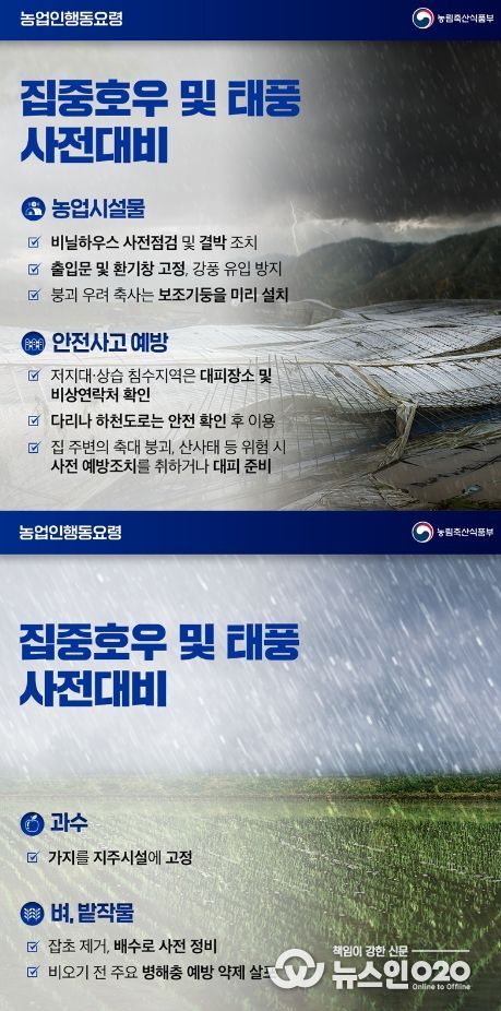 (뉴스인020 = 김나현 기자) 집중호우 및 태풍 사전대비 농업인 행동요령