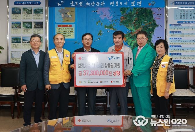 (뉴스인020 = 최정직 기자) 보령시는 26일 시장실에서 김동일 시장과 충남적십자사 박상규 사무처장, 봉사회 이흥원 보령지구협의회장, 전국이통장연합회 박종환 보령시지회장 등이 참석한 가운데 산불피해 지원 성금 전달식을 가졌다.
