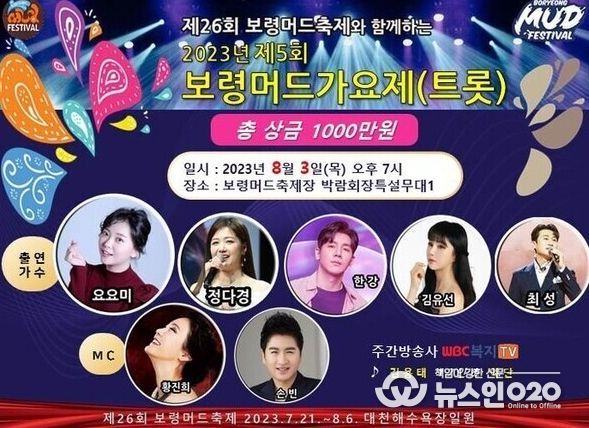 (뉴스인020 = 최정직 기자) 세계인이 함께하는 ‘제26회 보령머드축제’가 한창인 보령에서 관광객과 지역민이 함께 어우러질 수 있는 가요제가 연이어 펼쳐진다.