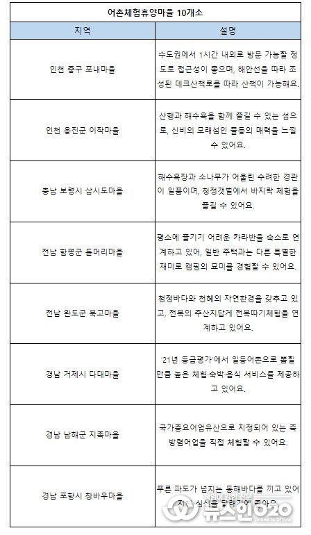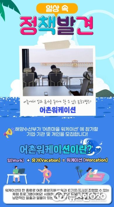 (뉴스인020 = 김나현 기자) 해양수산부가 ‘어촌마을 워케이션’에 참가할 기업·기관 및 개인을 모집합니다!
