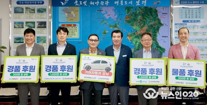 시에 따르면 이번에 전달된 후원물품은 △제이앤웰니스의 자동차(모닝) △NH농협은행 보령시지부의 에어컨 등 1000만 원 △보령LNG터미널의 안마기 등 1000만 원 △보령베이스의 TV 200만 원 등 각각 물품으로 후원한다.