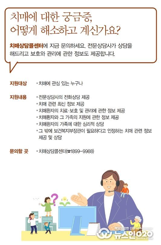 (뉴스인020 = 김나현 기자) 치매상담콜센터에 지금 문의하세요. 전문상담사가 상담을 해드리고 보호와 관리에 관한 정보도 제공합니다.