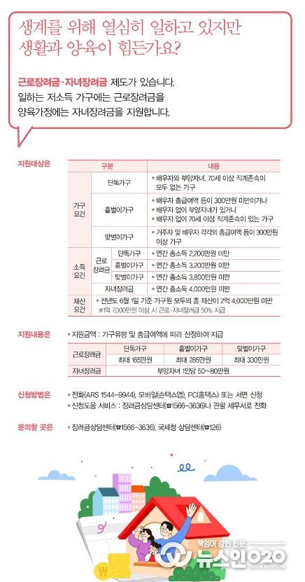 (뉴스인020 = 김나현 기자) 근로장려금·자녀장려금 제도가 있습니다.