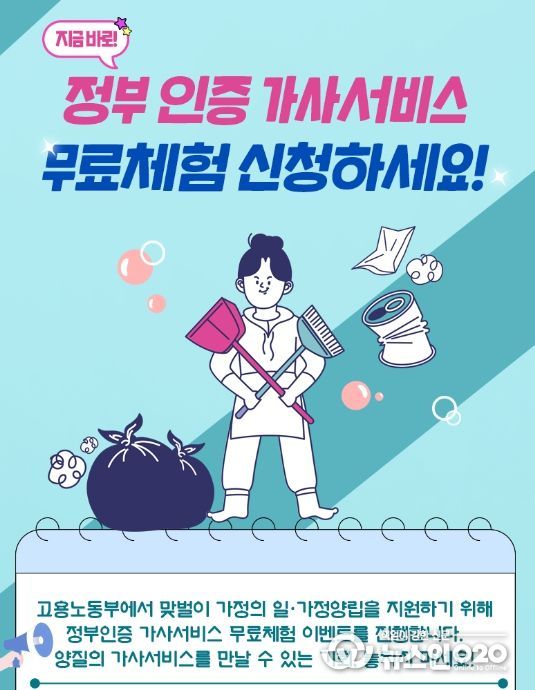 (뉴스인020 = 김나현 기자) 고용노동부에서 맞벌이 가정의 일.가정양립을 지원하기 위해 정부인증 가사서비스 무료체험 이벤트를 진행합니다. 양질의 가사서비스를 만날 수 있는 기회, 놓치지 마세요!
