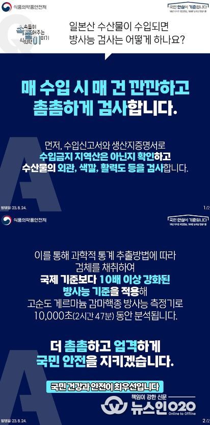(뉴스인020 = 김나현 기자) Q. 일본산 수산물이 수입되면 방사능 검사는 어떻게 하나요?