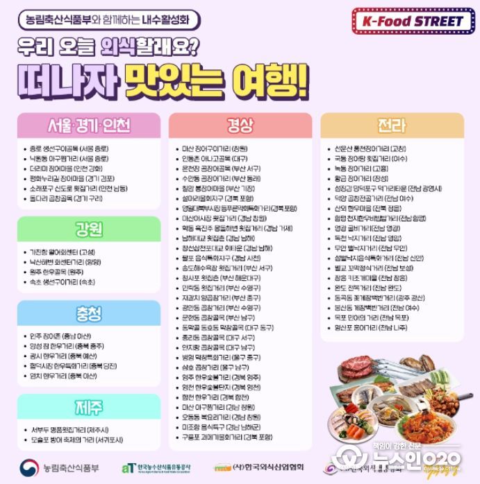 (뉴스인020 = 김나현 기자) 가을여행 계획중이라면, ‘K-음식거리’ 정보부터 확인하세요!