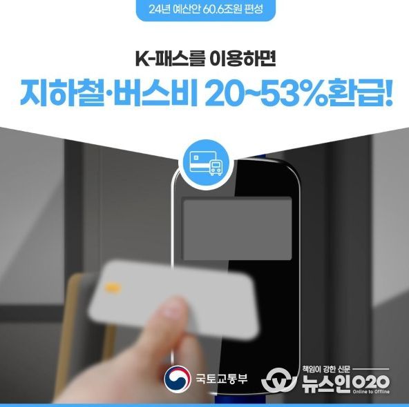 (뉴스인020 = 김나현 기자) K-패스를 이용하면 지하철·버스비 20~53%환급!