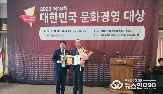 (뉴스인020 = 최정직 기자) 보령축제관광재단이 지난 18일 열린 ‘2023 대한민국 문화경영대상’에서 지역축제 부문 대상을 받았다.