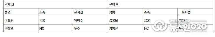 해당 선수들은 대한야구소프트볼협회 경기력향상위원회를 통해 삼성 김성윤(외야수), NC 김영규(투수)로 각각 교체하기로 했다.