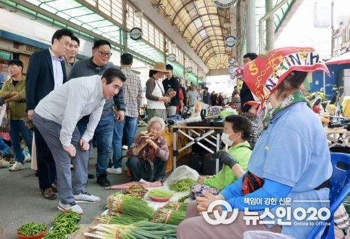 (뉴스인020 = 최정직 기자) 김동일 보령시장이 추석 명절을 앞두고 22일 오전 웅천시장을 찾아 시민들을 만나고 상인들 격려에 나섰다.