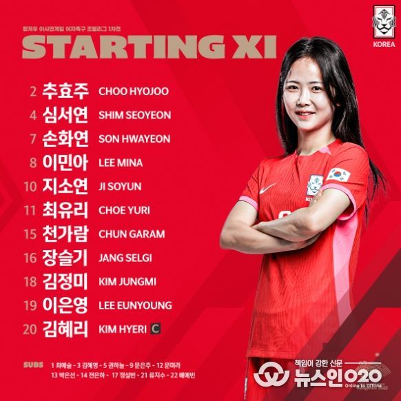 3선에는 장슬기(인천현대제철)와 지소연(수원FC위민)이 수비형 미드필더로 출격한다. 백포는 추효주(수원FC위민) – 심서연(수원FC위민) – 김혜리(인천현대제철) – 이은영(고려대)이 구성하며, 골키퍼 장갑은 김정미(인천현대제철)가 낀다.
