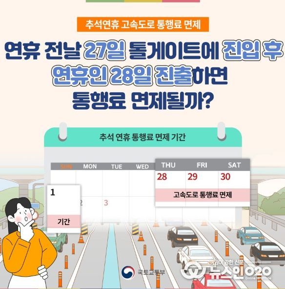 (뉴스인020 = 김나현 기자) 추석연휴 고속도로 통행료 면제 임시공휴일도 통행료 면제될까?