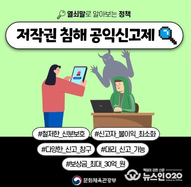 (뉴스인020 = 김나현 기자) “저작권법 위반 행위, 안심하고 신고하세요!”