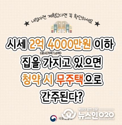 시세 2억 4000만 원 이하(공시가격 1.6억) 집을 가지고 있으면 청약 시 무주택으로 간주된다?