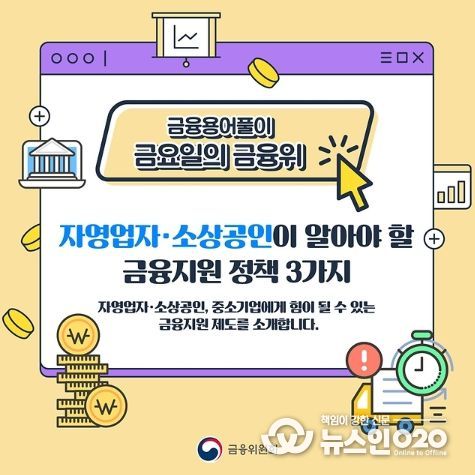(뉴스인020 = 김나현 기자) 자영업자·소상공인, 중소기업에게 힘이 될 수 있는 금융지원 제도 3가지를 소개합니다.
