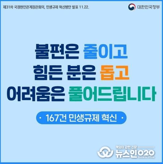 (뉴스인020 = 김나현 기자) [제31차 국정현안관계장관회의, 민생규제 혁신방안 발표(11.22.)]