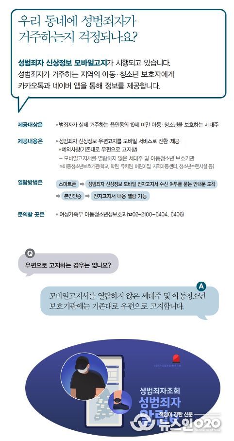 (뉴스인020 = 김나현 기자) 성범죄자 신상정보 모바일고지가 시행되고 있습니다.