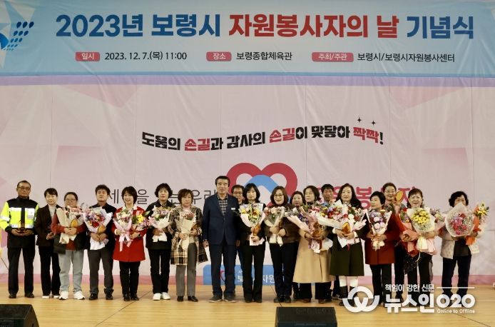 (뉴스인020 = 최정직 기자) 보령시는 7일 보령종합체육관에서 자원봉사자 등 400여 명이 참석한 가운데 유엔이 제정한 ‘국제 자원봉사자의 날(12월 5일)’을 맞이해‘2023년 보령시 자원봉사자의 날’ 행사를 개최했다.