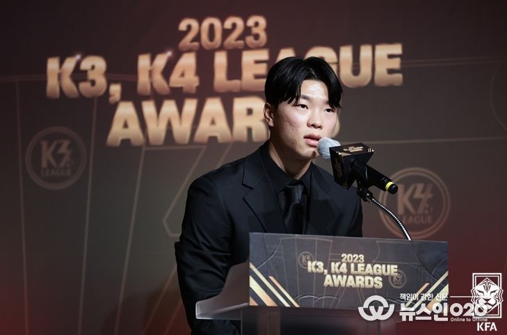 7일 오후 2시 서울 광화문 교보생명 빌딩 컨벤션홀에서 2023 K3, K4리그 시상식이 개최됐다. 가장 큰 관심을 모았던 K3리그 MVP는 리그 득점왕을 차지하며 FC목포의 리그 2위를 이끈 제갈재민에게 돌아갔다.