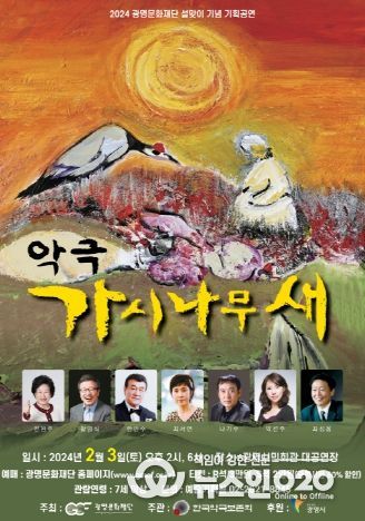 (뉴스인020 = 이한영 기자) (재)광명문화재단은 오는 2월 3일 오후 2시와 6시 총 두 차례에 걸쳐 악극 '가시나무새'를 광명시민회관 대공연장에서 올린다.