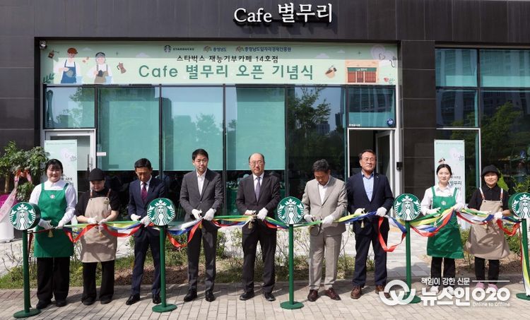 (뉴스인020 = 최정직 기자) 충남도는 23일 예산에 있는 충청남도일자리경제진흥원 1층에 스타벅스 코리아, 더베이크와 함께 ‘카페(Cafe) 별무리’를 개점했다.