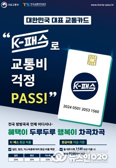 (뉴스인020 = 최정직 기자) 충남도는 1일부터 국토교통부 대중교통비 지원사업인 케이(K)-패스 사업을 도내 15개 시군에서 시행한다고 밝혔다.