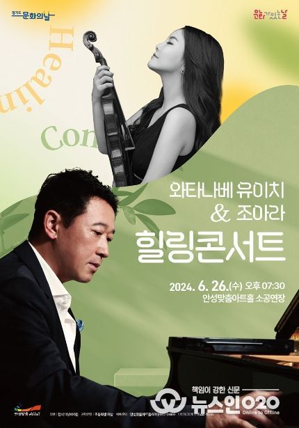 (뉴스인020 = 김성길 기자) 안성맞춤아트홀은 6월 문화가 있는 날 기획 공연으로 26일 저녁 7시 30분, 안성맞춤아트홀 소공연장에서 ‘와타나베 유이치 & 조아라 힐링 콘서트’를 개최한다.